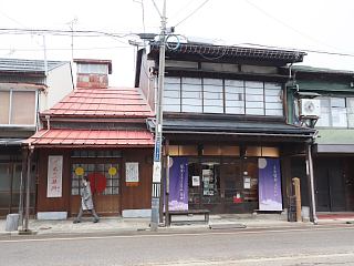 注目すべきは右の建物。ガラス戸には「高野商店」と書かれています(「高」は梯子高)。もともと麻屋さんだったそうですが、現在はそれを「瞽女ミュージアム高田」として活用。