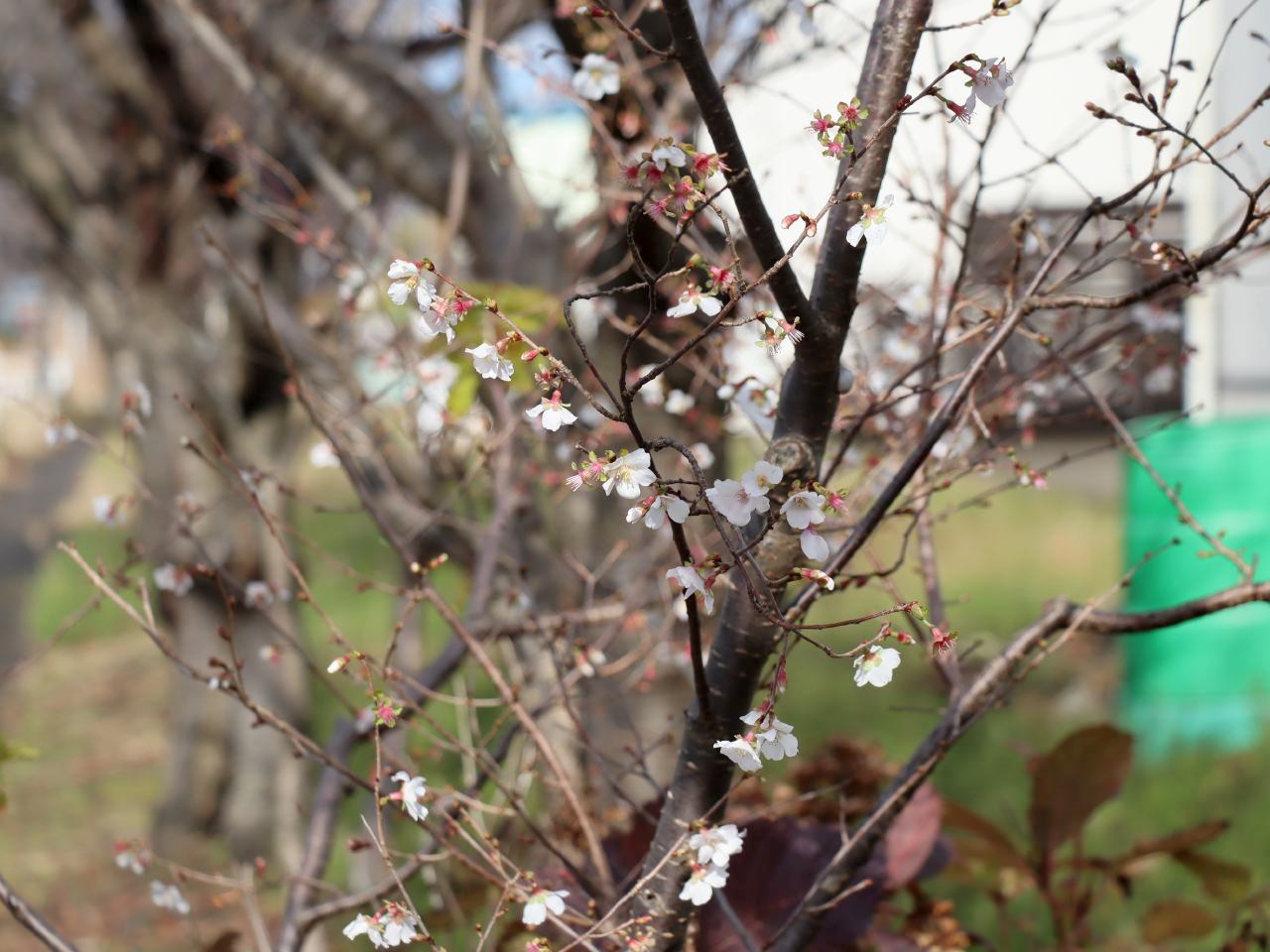 他の幼木も冬から初春(1月/2月/3月)に花を咲かせるという具合。実は実家へ行く途中で、初冬に花を咲かせた別な桜の木を見たことがあります。