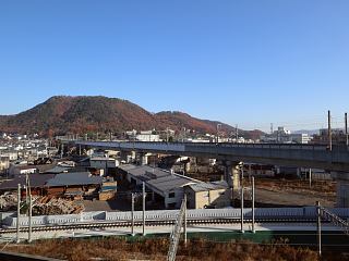 だからセンセイも最初は見逃したのですが良く見ると、東北新幹線の高架の下に真新しい新アプローチ線。2枚目の写真は、続いて撮影したもの(拡大写真(別ウィンドウ、1280×960))。新アプローチ線の様子が良くわかります。「2026年度末の開業」とのことだったので、あまり期待していなかったのです。