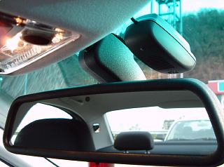 ミラーにはセンサーが二つついていて、夜間、後続車の光がまぶしい場合には自動的に反射率を落として、見やすくします。