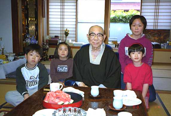 子供たち(師の弟≪前潟東村村長:故人≫の孫)に囲まれて