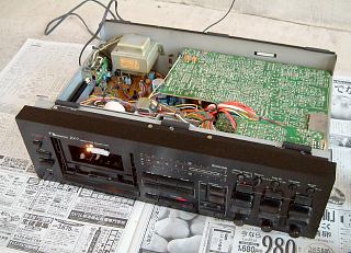 とにかく高くて、センセイのモデルも20万円近くしたように記憶しています。でも当時(全盛期)は、それだけの価値のある製品を作っていました。右の写真がデッキの上蓋(と下蓋)を開けたものです。