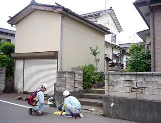 問題がなければ緑の、注意が必要ならば黄色の、そして危険なら赤色の紙を貼ります。センセイの家は緑色だったのですが、このお宅は注意が必要と判定されたようです。