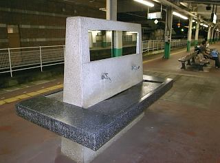 右の写真のように新幹線ホームにも水飲み場がありますし、3枚目の写真のように、在来線のホームには昔懐かしい洗面所があります。