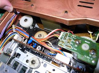このシリーズは同じ症状が多発していて、その原因もよく知られています。トレーを駆動するためのゴムベルト2本が劣化してしまうのです。詳細については、学部生の時からの知り合いで、現在は大学院2年、そして無事に就職が内定したS氏──いつもお世話になっています──のサイトに同じシリーズのモデルを修理した記録が載っていますので、ぜひご覧ください。