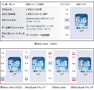そこで、各種処理速度はVista以降のOSが搭載している「Windowsエクスペリエンス インデックス」で比較しました。OSのバージョンやメモリ量その他が違うので、あくまでも目安。