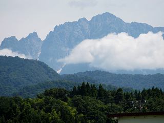 そして、場所によって山々の表情が大きく異なるのです。ここからだと写真左側の巨大な谷...というより割れ目がこれでもか、というほどの迫力で迫ってきます。この世の終わりすら覚えるのですが、これが富山市付近からだと、あまり見えない。