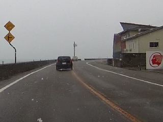 ただし富山県東部から北は雪になりました。道路に積もってはいないのですが。途中でお昼を食べたので、運転はやや注意散漫気味。これではいけないと自分に言い聞かせて安全運転を心がけます。糸魚川市中心部からは1本道。