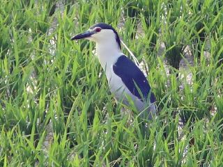 大学に近づいた時、「あれっ?」と思って道路脇の田圃を見ると、見慣れない鳥が。正確には明らかに、初めて見る鳥です。体長は40cmくらい。