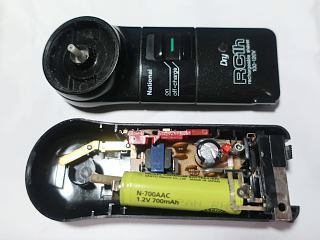 交換用の“Panasonic”ブランドのニッカド電池はまだ手持ちが。高熱のハンダを使うので、何が起きても周囲に影響が及ばないように準備を整え、まず本体の蓋部分を外します。何度かやった作業なので、まったく問題なし。