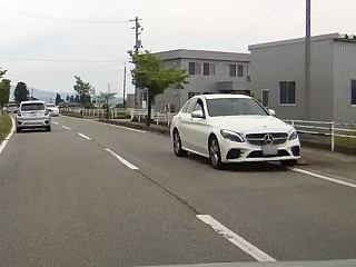 残念ながら、センセイの車が搭載しているドライブレコーダーは前方しか記録しないのでその映像は残っていません。倖い、大きな事故には到らず救護する必要はないようだったので、センセイを含めて富山市方向への車はそのまま走行しました。後から記録を確認すると、縁石に乗り上げてしまったのはおぉ、大型のベンツ。