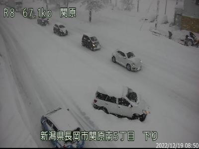 それだけではありません。新潟県の「にいがたLIVEカメラ」によると、カメラに写っている範囲内に限っても、自宅すぐそばの2カ所(こちら(2台)とこちら)で大型トラックが立ち往生。市内曾地峠では大型トラックと大型タンクローリーが道路を塞いでいます。(措置峠の車両はその後いずれも移動、撤去)