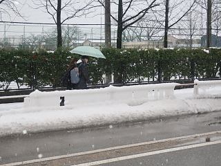 風も出てきました。午前の最初の講義を終える頃には雨から霙(みぞれ)に。正午前には大粒のベタついた大粒の雪になりました。気温が0℃前後で、相対的にまだ高いことを示しています。それが午後には細かい雪に変化。
