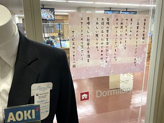 写真は先週気づいて撮影したもの。大学食堂のある厚生棟2階を歩いていたら、サービスセンターの窓にメッセージが張り出されていました。確かに学生諸君は入学前のアパート探しや、就職活動などの際にかなりお世話になっているはず。