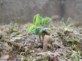 ■5月26日(金) 庭に撒いた枝豆に新しい葉が。しかしどうやら、これは本葉ではないらしい...