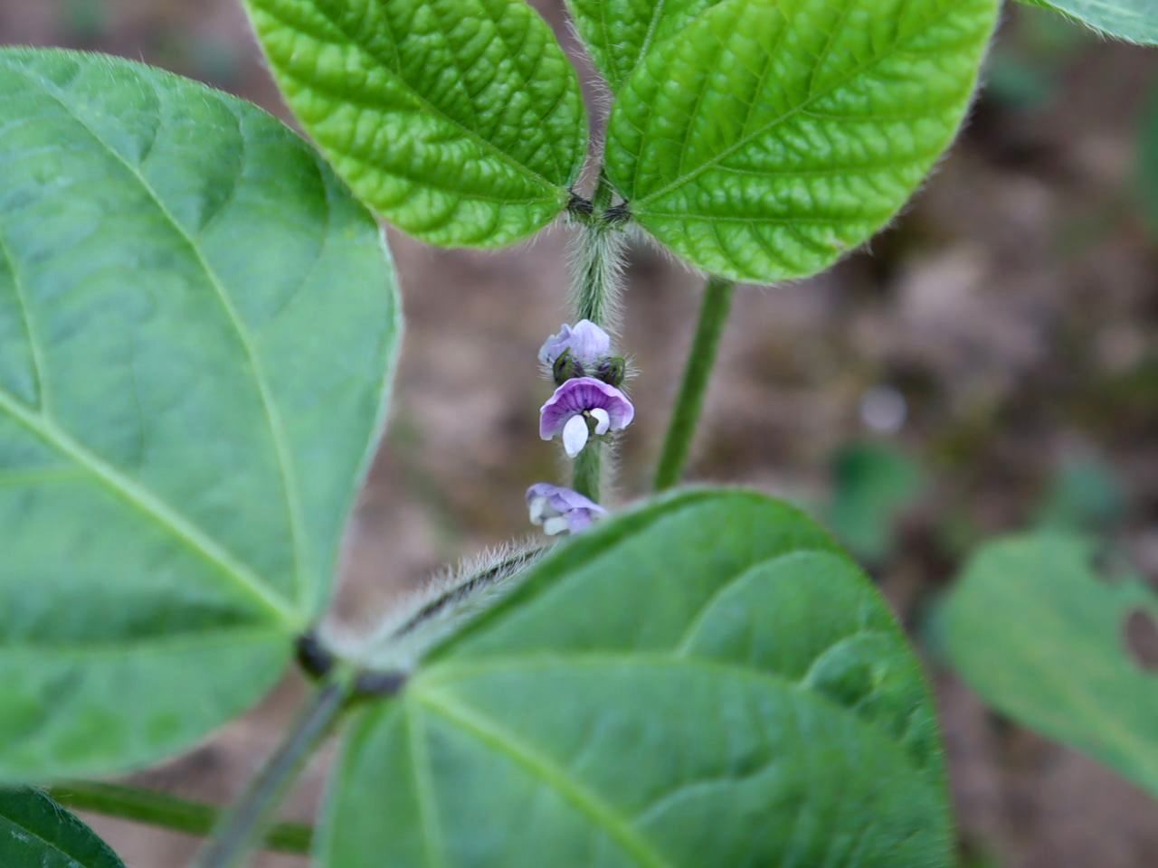 ■6月24日(土) 葉と葉の間に存在する、とても小さな紫色の物体はもしかして、初めて見る枝豆の花?