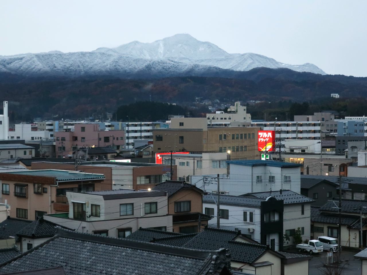 まるで定規で線を引いたかのように、標高の高い場所は真っ白に雪化粧。米山の標高は993m。5合目から6合目付近、つまり約500〜600m以上の場所に雪が積もったというイメージですが、今回は下から見上げているので正確な計測ではありません。