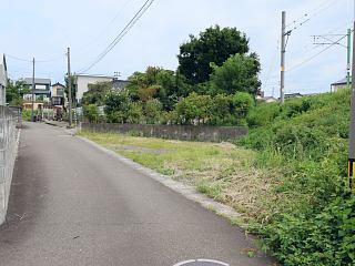 日焼け止めクリームを塗って、外へ。道路構造──写真右側の越後線の下にアンダーパスがある──上の関係で、あまり通らない場所を歩いていると、あ"っ...。あるべき物が存在していません。(1枚目の写真)