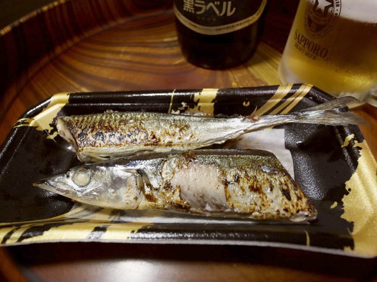 目に入ったのは、サンマの塩焼き。報道でご存じの方が多いと思いますが、太平洋側で長く続いた黒潮大蛇行が収束したためか、今年はサンマが豊漁。しかも大型のものが多いらしい。値段は以前より高いままですが、それでも当地でも出回るように。