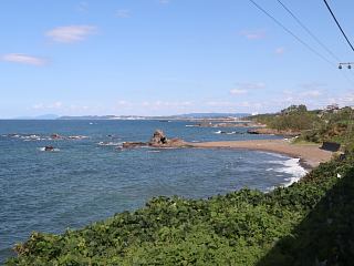 柏崎駅西隣の「鯨波」駅手前で、窓を開けて撮影したのが右の写真。(拡大写真(別ウィンドウ、1280×960))センセイお気に入りの日本海です。