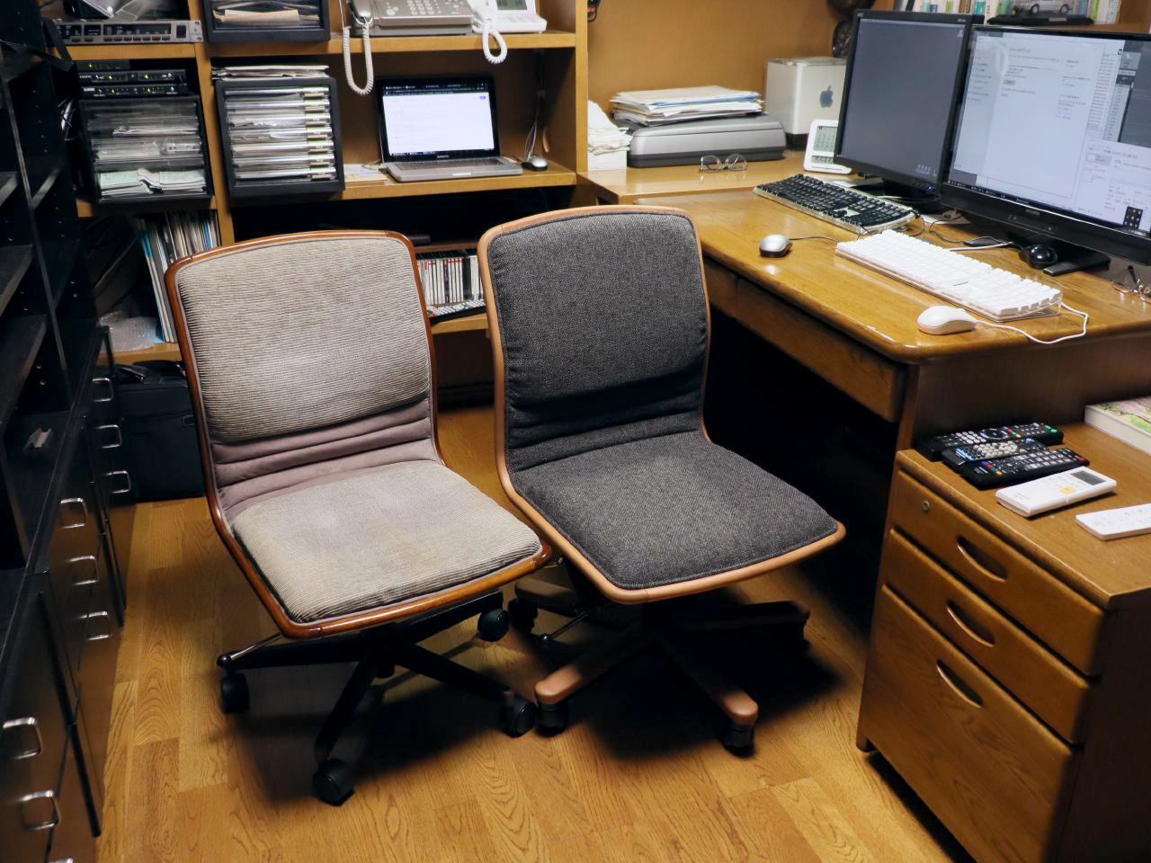 通信販売で購入し本日午後、納品されました。(拡大写真(別ウィンドウ、1280×960))拡大写真を比較していただくとわかりますが、旧製品はやはり疲れています(実はクッション、バネやキャスター等の見えない部分も)。クッションがかなり硬い分、座面が1cmくらい高い。