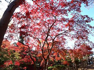 右の写真は、グルッと一周するような格好で入口に戻る途中で撮影したもの。(拡大写真(別ウィンドウ、1280×960))晴天でコントラストが強かったこともあり、明るさの加減が難しい。とてもプロが撮影したポスターやサイトのようにはいきません。そもそも葉がかなり落ちていたし。