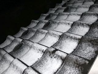 1枚目の写真は昨晩遅くに書斎の窓を開けて、直下の廊下(縁側)の屋根を撮影したもの。このサイトを更新中、外が急にうるさくなりました。大量の霰(あられ)が降っているのです。翌日の状況を心配しつつ、就寝。
