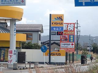 そのための値下がりで、法案成立に合わせた(/祝った)わけではないはず。自動車での移動の途中で他のガソリンスタンドの価格も確かめたのですが、どうやらライバル店の値下げを察知して、このお店も一気に5円下げたようです。