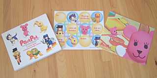 お遊びのソフトもついていますが、こちらの一番のお楽しみは特製ケース(かばんになっている)だったりして。シールもついているので、娘からもらったセンセイはPostPetのケースに張り付けています。ウサギとカメ、お似合いのカップルでしょ?